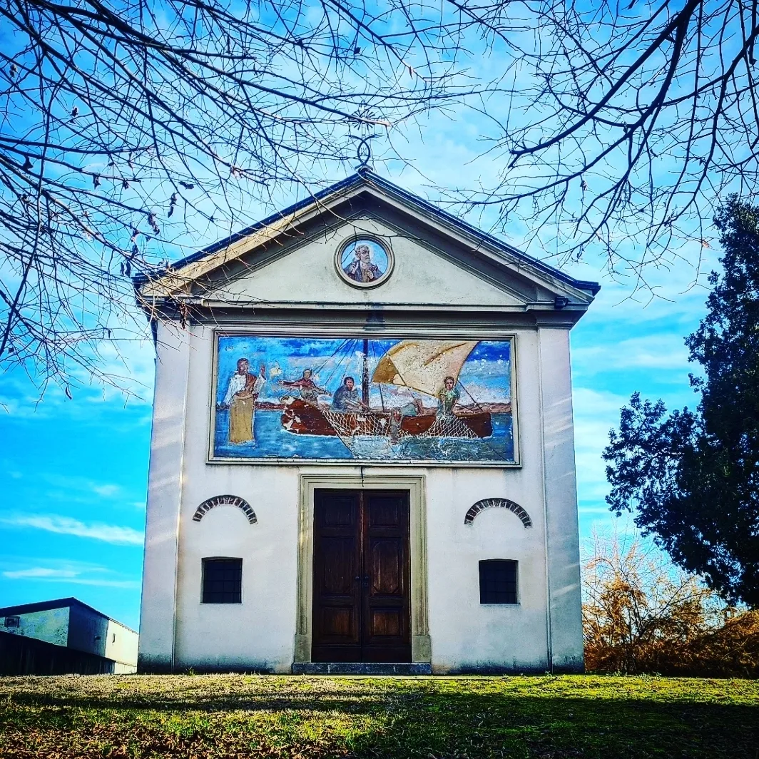 Arrivati all’incrocio con indicazioni STRADA FRANCA giriamo a sinistra fronte a noi la Chiesetta di San Bernardino.